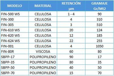 Productos que se distinguen por su gran capacidad de retención de contaminantes, permiten la separación eficaz de sólidos en suspensión, en una simple acción mecánica de cribado superficial.